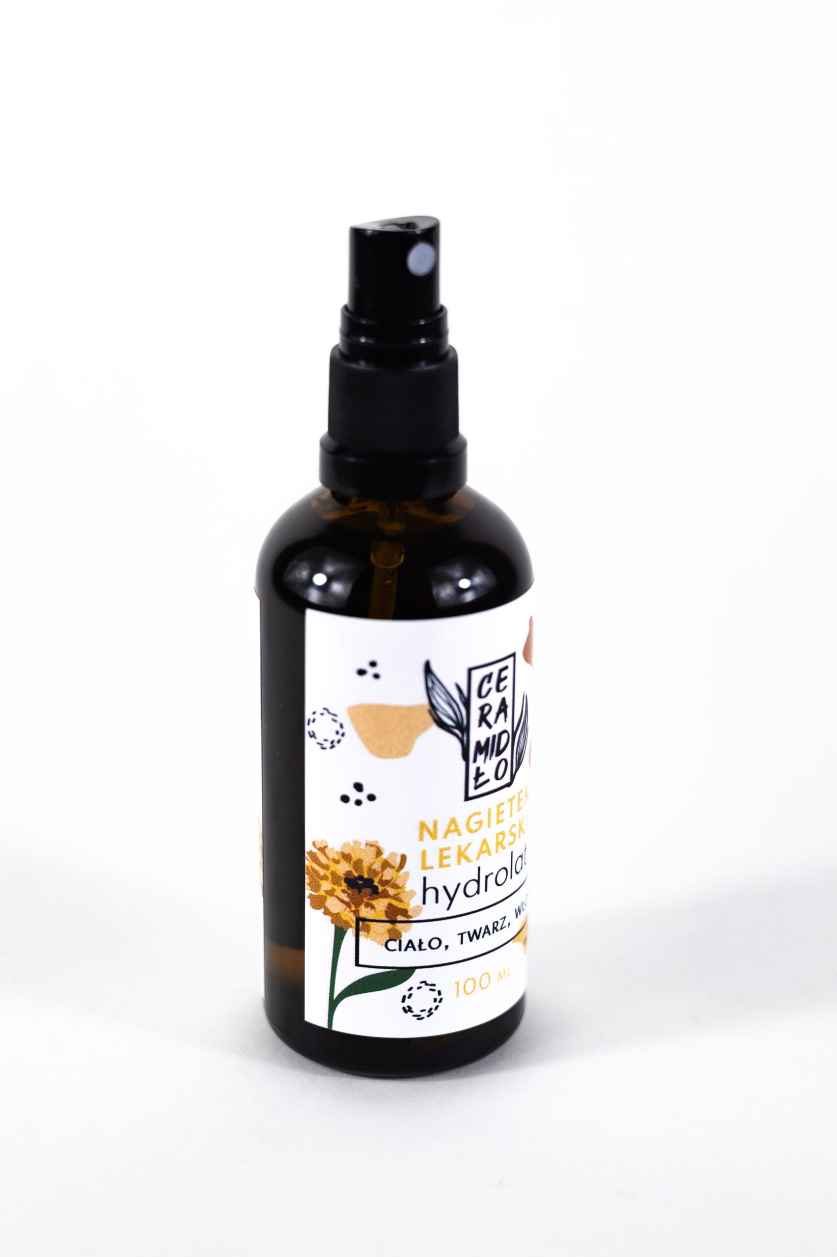 Hydrolat z nagietka lekarskiego to naturalny produkt otrzymywany podczas destylacji parowej kwiatów nagietka.  Posiada delikatny zapach, który jest łagodny i ziołowy, co czyni go przyjemnym w użyciu. Jest znany ze swoich właściwości łagodzących i przeciwzapalnych, co sprawia, że jest idealny do pielęgnacji skóry wrażliwej i podrażnionej.