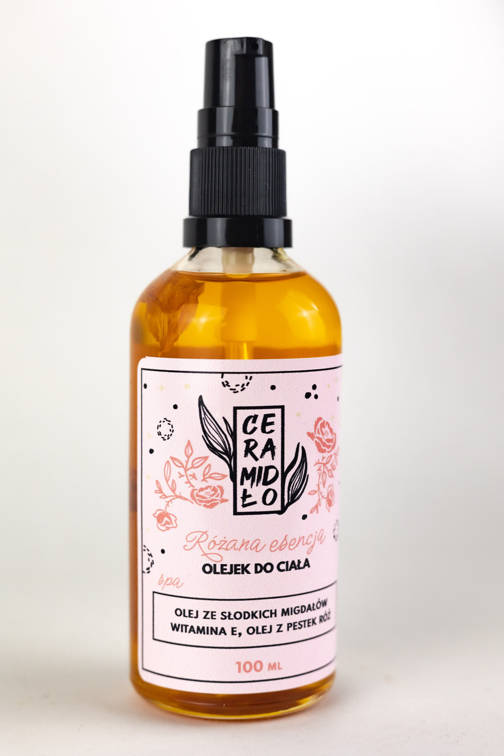 Ten lekki olejek do pielęgnacji całego ciała „Różana sencja”, zregeneruje i odżywi skórę. Olejek jest na bazie naturalnych olejów roślinnych z zanurzonymi płatkami róż, które cudownie wpływają na ciało i umysł.  Olejek błyskawicznie się wchłania i nie  pozostawi tłustego filmu na skórze a przy tym odprężająco pachnie różami 🩷